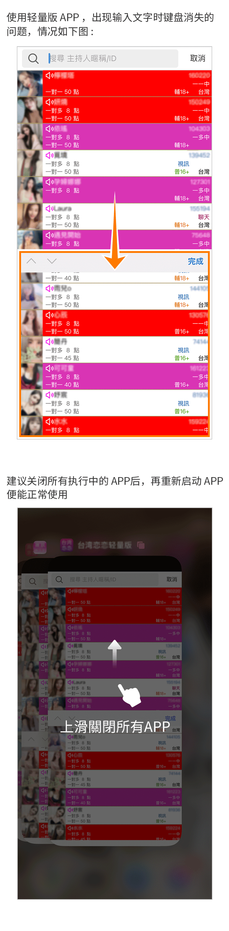 建议关闭所有执行中的 APP
